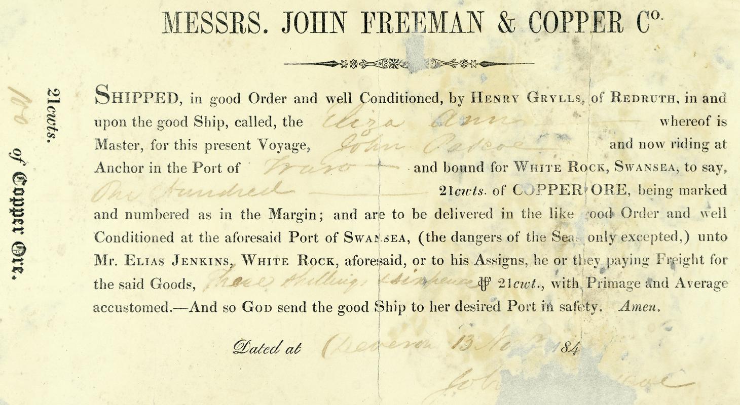 Grant of probate to Ann Williams of Borth, 23 September 1892 following the death, intestate, of her husband, Capt. John Williams, who died on 17 June 1892. Black print on white parchment with details handwritten in black ink. Remains of paper and wax seal attached to bottom.