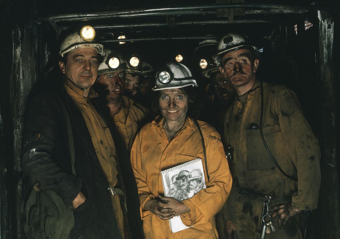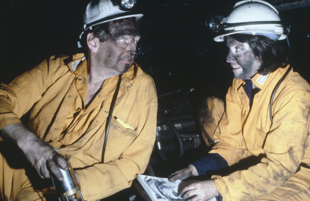 Artist Valerie Ganz working underground at Six Bells Colliery in 1985 during her year-long project to depict the working life of the local mineworkers.