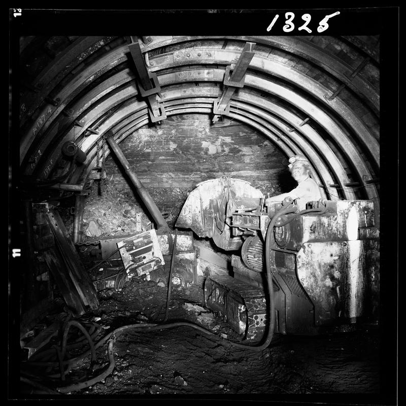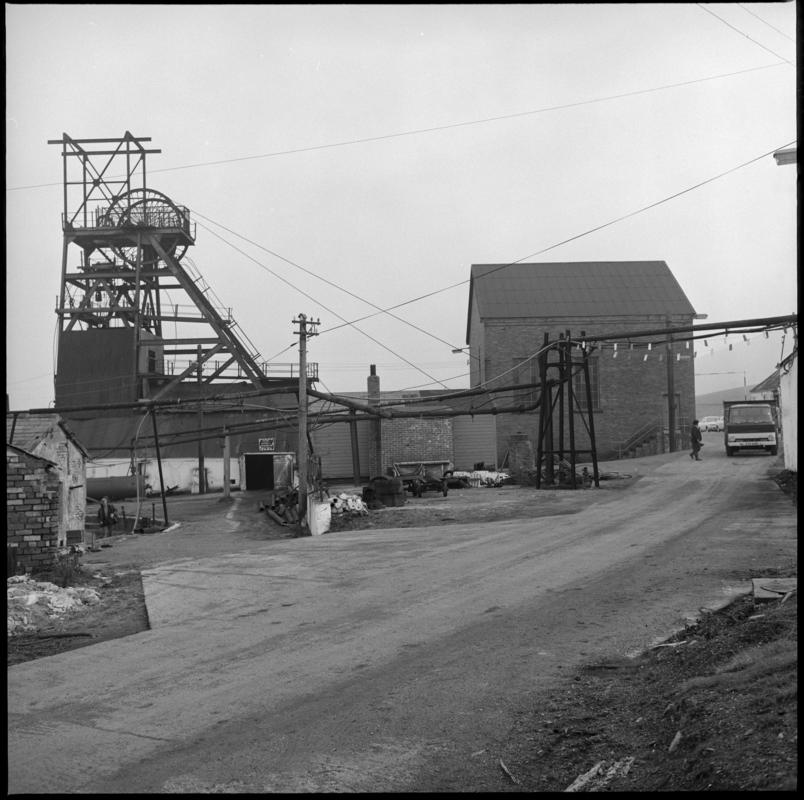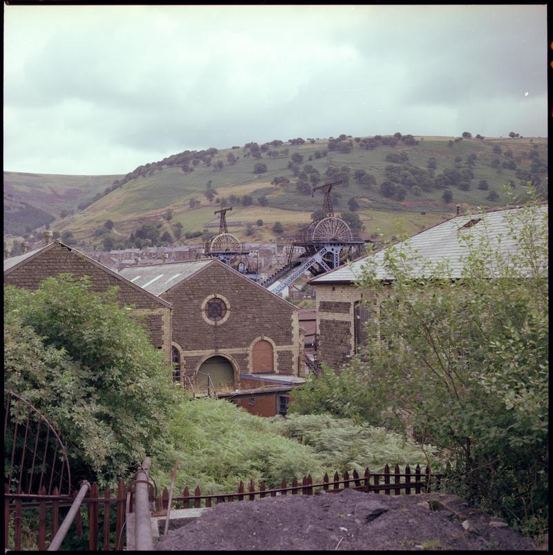 Colour film negative showing a slope at pit bottom with rail tracks, Bedwas Colliery.