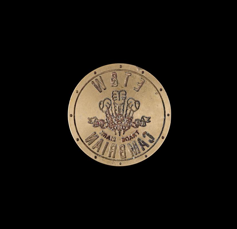 Hand held naked flame carbide lamp. Brass hood arrangement shielding the wick holder. Long handle.