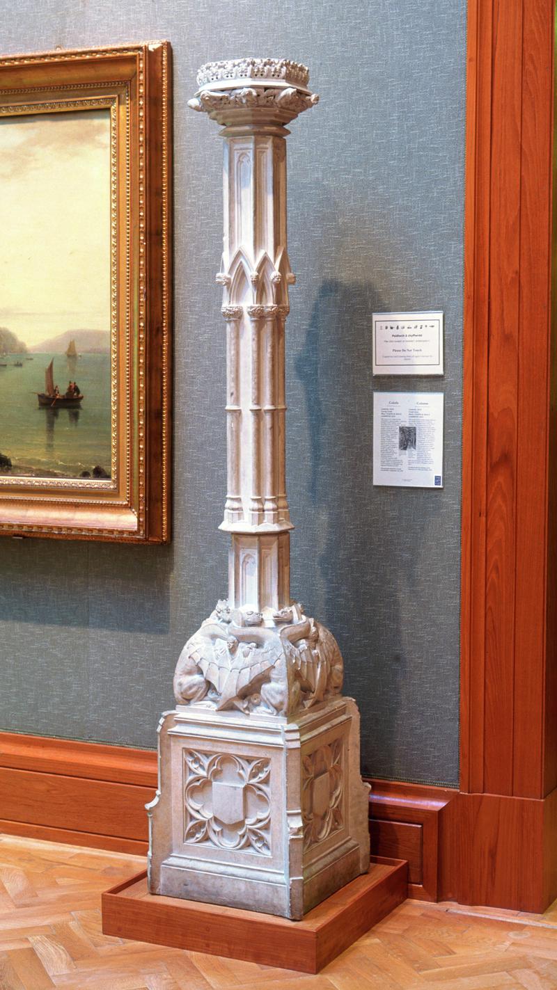 Coffee pot and cover, bone china, Can shape, with inset base and cylindrical body, the spout rising in the form of a half cylinder from the lower side to an out-turned covered lip above the level of the rim, loop handle, a ledge inside the rim for the cover, the cover circular with an oval loop knop and a flange below shaped to fit the ledge of the pot; the pot transfer-printed on each side with the 'Sunflower' pattern (C2002) in brown, green, orange and yellow, the cover aerographed on top in old gold.