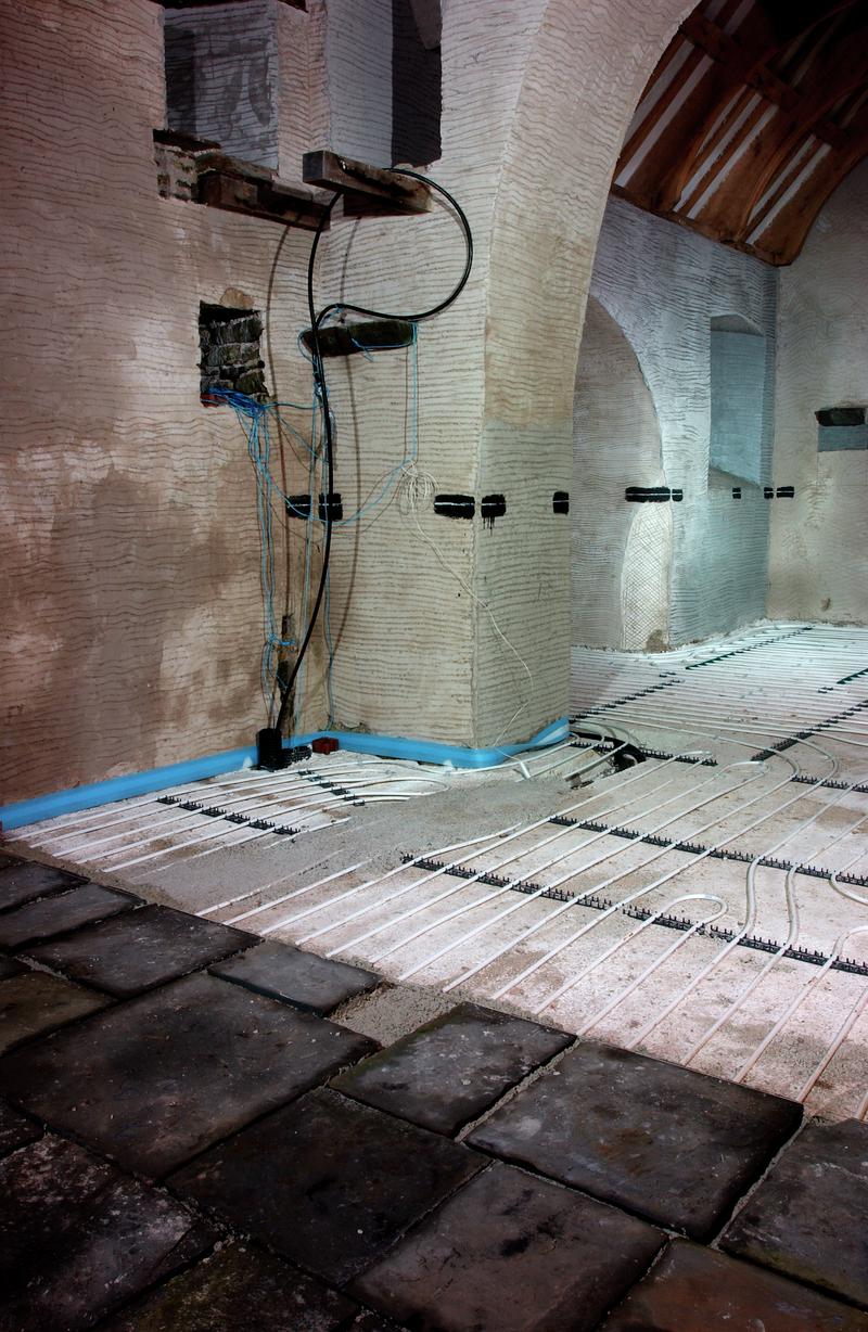 St Teilo's church has been refurbished as it may have appeared about the year 1530, complete with all the elements associated with a late medieval Catholic church, including a rood screen and loft (between the nave and chancel), altars, carvings and brightly-coloured paintings on all the walls.