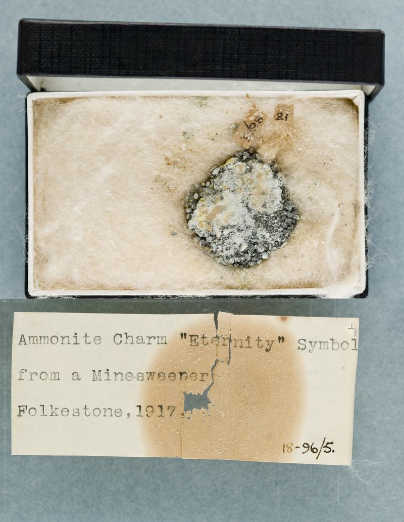 Ammonite charm "Eternity" symbol from a minesweeper, Folkestone, 1918.