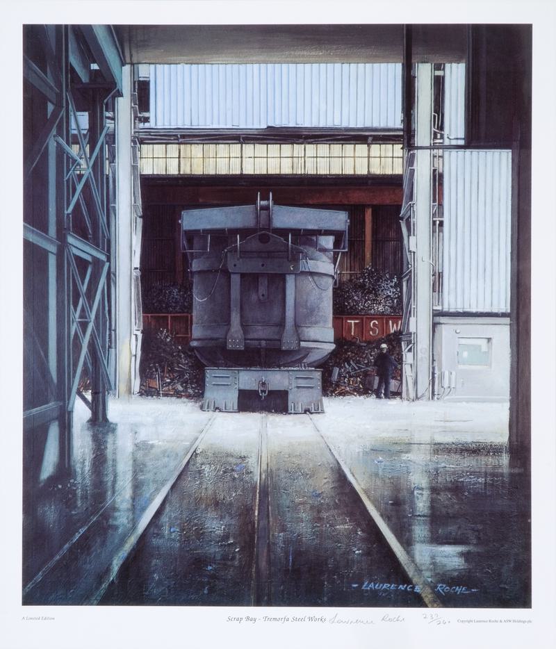 Black and white print showing remains of Clydach lime works. Artists signature in pencil at bottom right. In card mount.