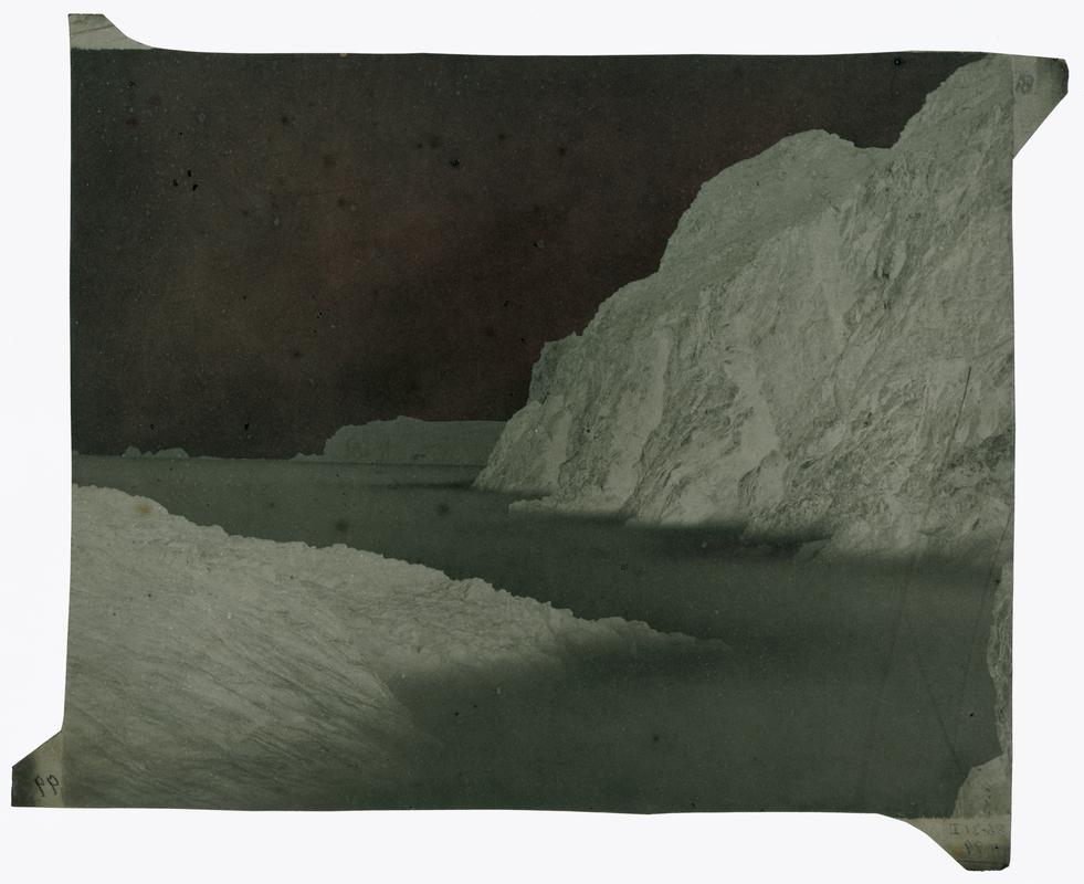 Salted paper print. Lady (Hin?) seated with baby (May) on lap, in the doorway of Oakley Cottage, Hampshire.