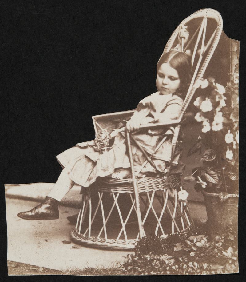 Collodion glass negative. Sarah Moggridge seated in chair, with her cousin Ellen Toogood kneeling besides her. Taken outside next to a house, probably Penllergare.