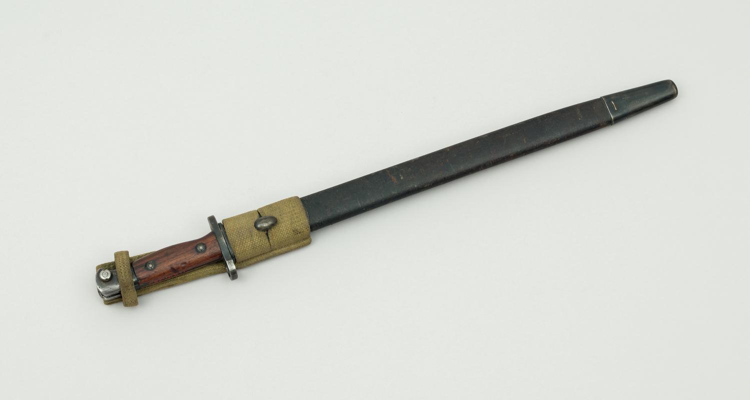Wedding dress worn by Dorothy Dean on her wedding to American GI, Robert David Burns. The wedding was held at St Illtyd's Church, Upper Church Village on 22 September 1944. The groom was a member of the USA 30 Infantry Division. The wedding dress was made by two friends of the bride.