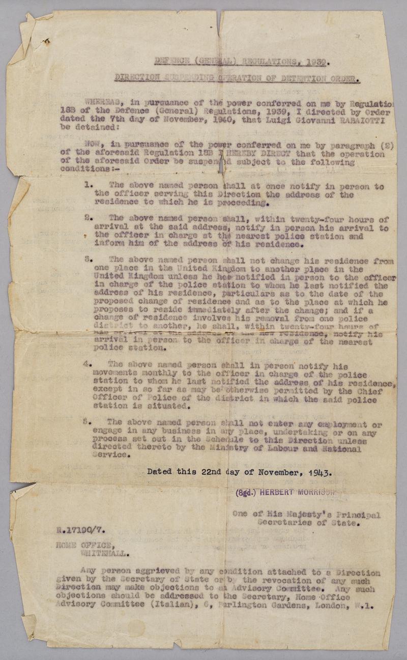 Letter from the Royal Italian Consul, Cardiff, concerning the Italian citizenship of Luigi Rabaiotti of Port Talbot. Typed on headed paper, dated 8 May 1940.