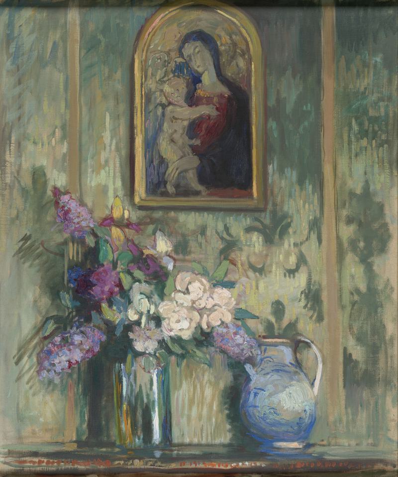 This little picture is one of about twenty oil paintings Gwen John showed at the Chenil Gallery, London, in the summer of 1926. This exhibition, arranged for her by her brother Augustus, was a critical and financial success. The setting is the artist's home at 29 rue Terre Neuve, Meudon, and the table and teapot often appear in other paintings.