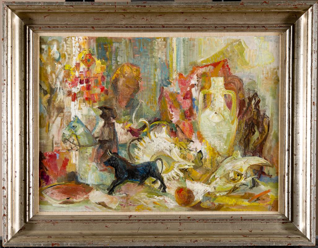 This little picture is one of about twenty oil paintings Gwen John showed at the Chenil Gallery, London, in the summer of 1926. This exhibition, arranged for her by her brother Augustus, was a critical and financial success. The setting is the artist's home at 29 rue Terre Neuve, Meudon, and the table and teapot often appear in other paintings.
