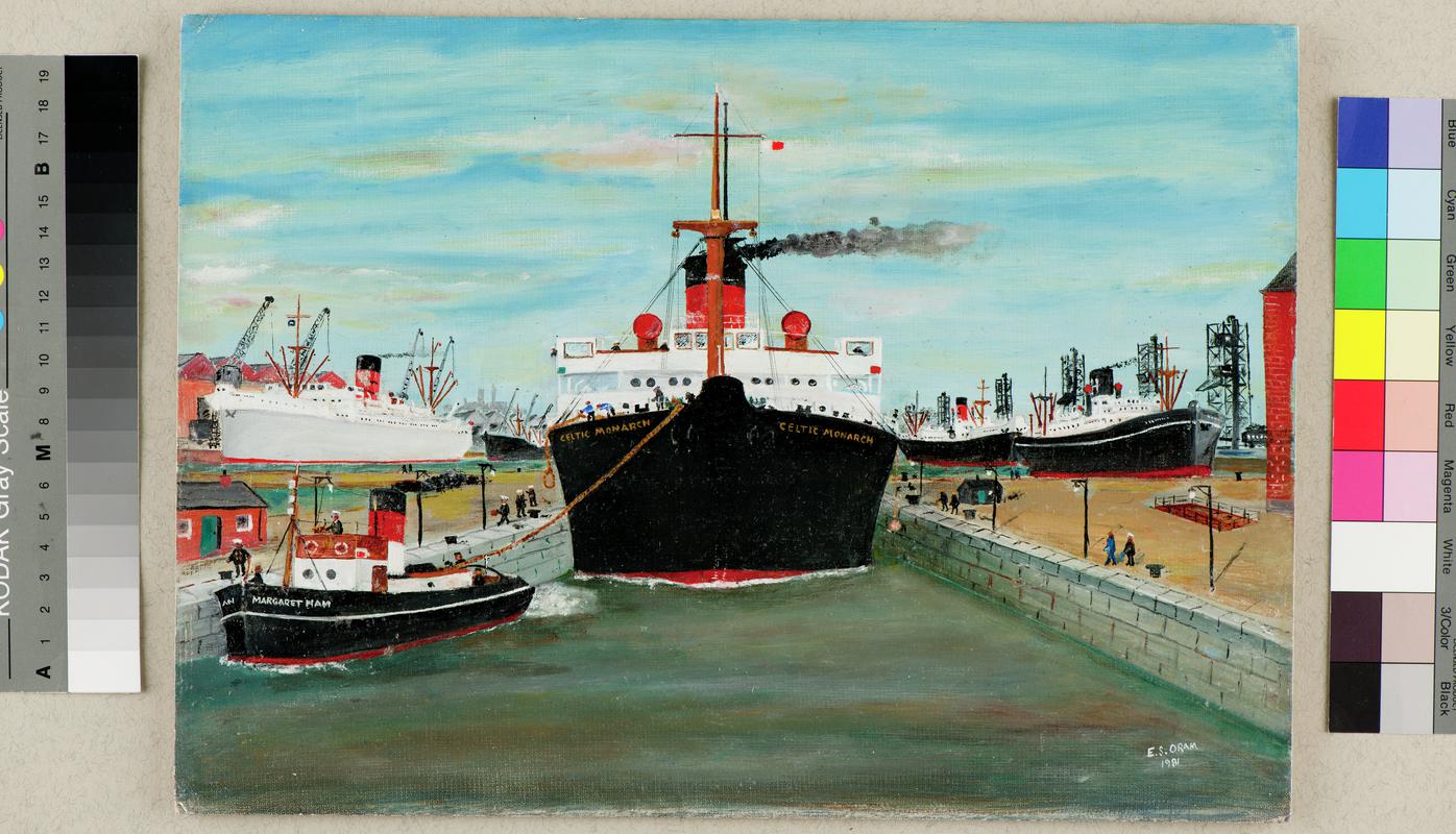 Harrison Liner Being Towed Into Dock (painting)