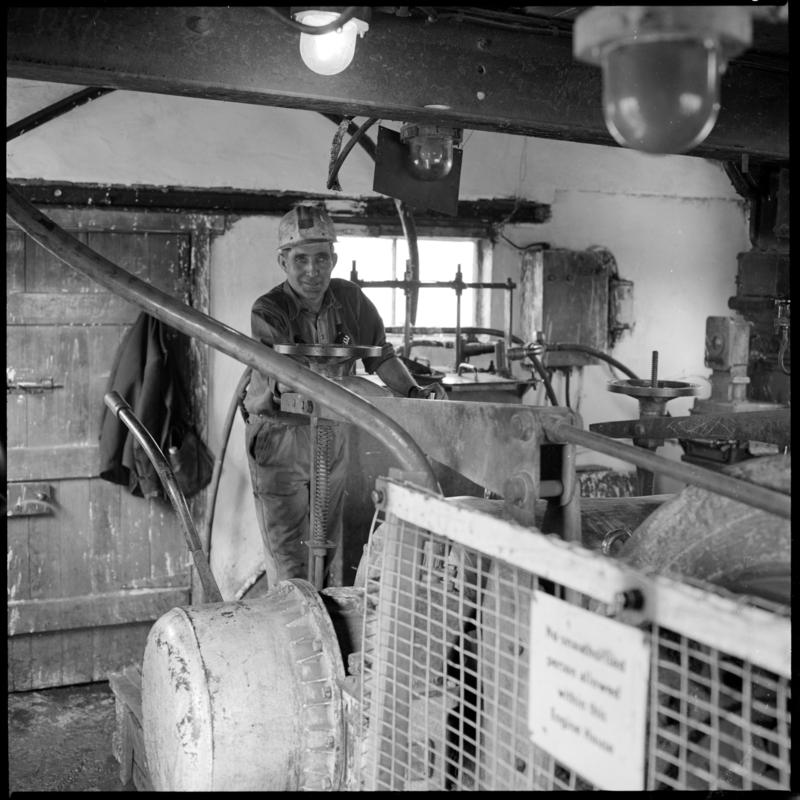 Black and white film negative showing a miner, Blaengwrach Mine, 1 November 1979. 'Blaengwrach 1 Nov 1979' is transcribed from original negative bag.