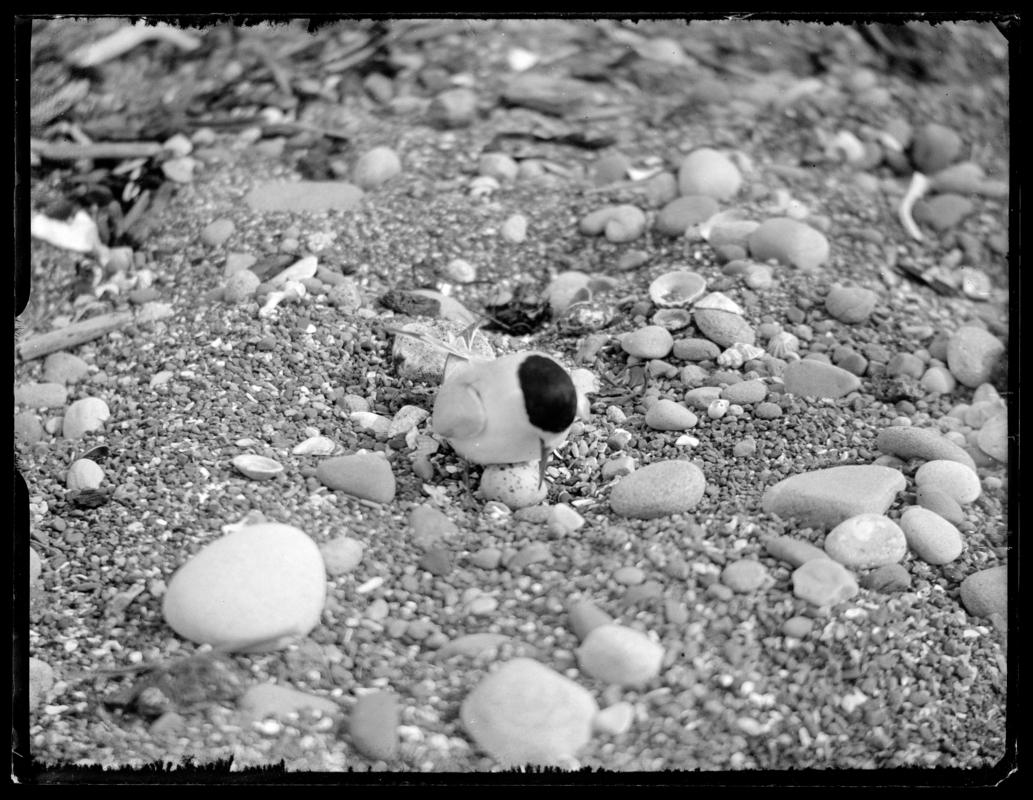 A Little Tern (Sternula albifrons) landing at nest, Towyn, Conwy. Photographed 1 June, 1914.
