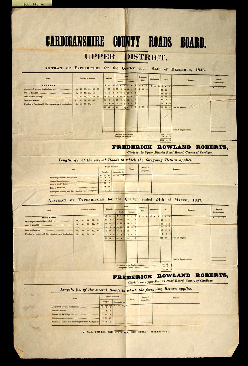 Poster of a letter "To the Public generally and to our Neighbours in particular". Contents information warning against attacking turnpikes from three convicted of this, written in Cardiff Gaol, Nov.1st 1843. Photocopy of poster.