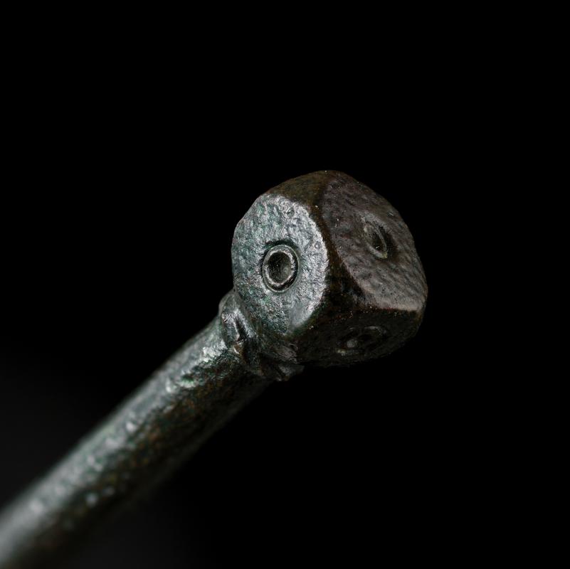 Tweezers of simple type, made by folding and pinching a strip of bronze.