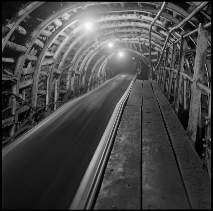 Black and white film negative showing a locomotive at Abertillery New Mine, 1977. '1977' is transcribed from original negative bag.