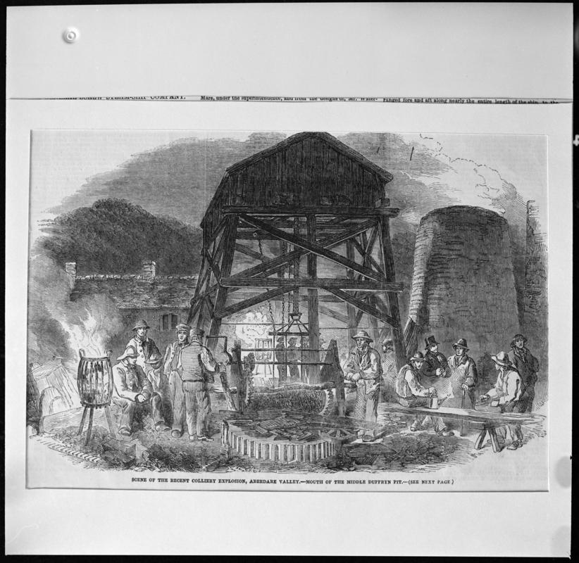 Black and white film negative of a photograph showing the downcast shaft, Deep Duffryn Colliery. 'Deep Duffryn' is transcribed from original negative bag.