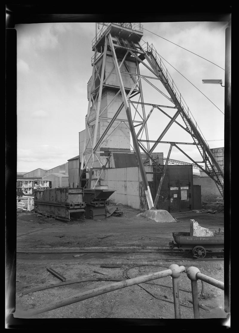 Colour film slide showing Pwllfaron Colliery buildings. Pwllfaron Colliery was owned by Aberpergwm Colliery Company.