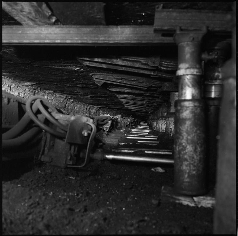 Black and white film negative showing a Cameron steam pump situated in the No.2 landing in the Hetty shaft, Great Western Colliery.
