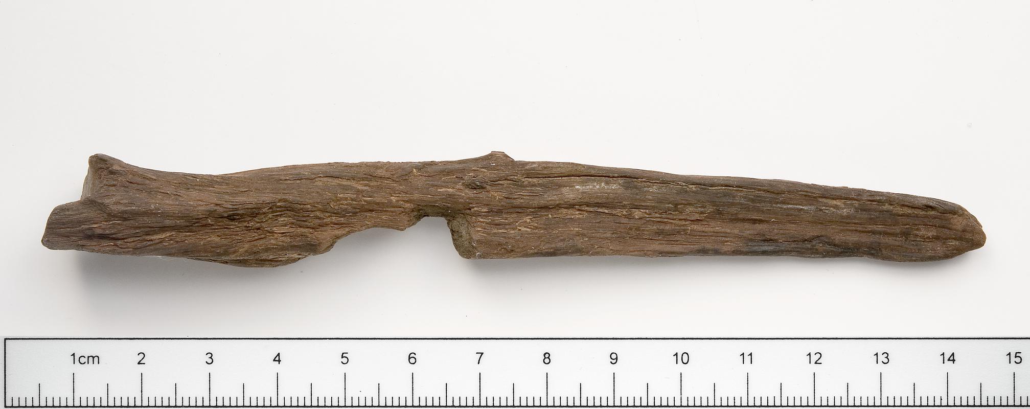 Thumbstick of varnished blackthorn made by David Davies, Llandeilo, south-west Wales.