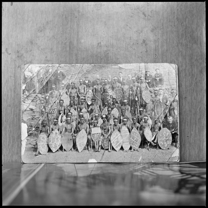 Black and white film negative showing fuel ready for shipment at Swansea Docks, photographed from a publication.