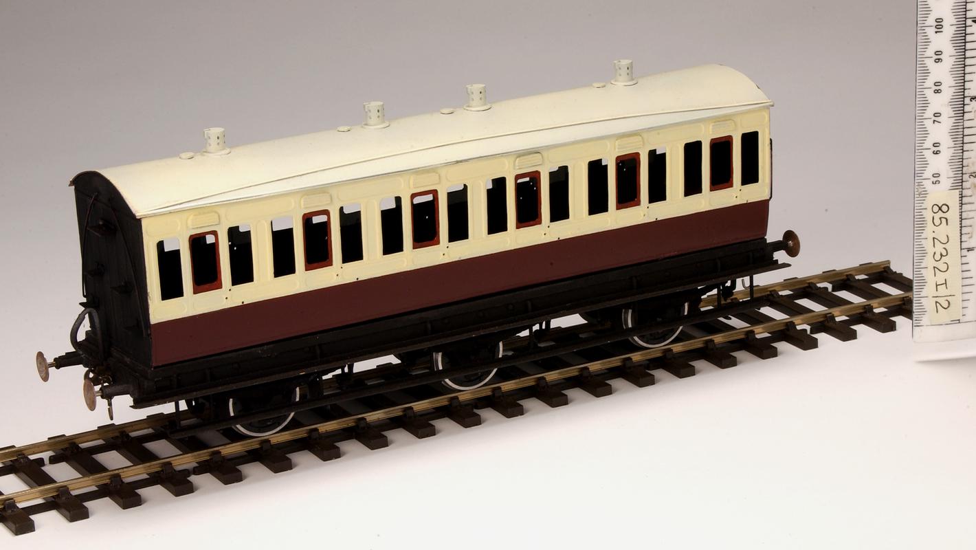 Rhymney Railway coach model. Loose from base.