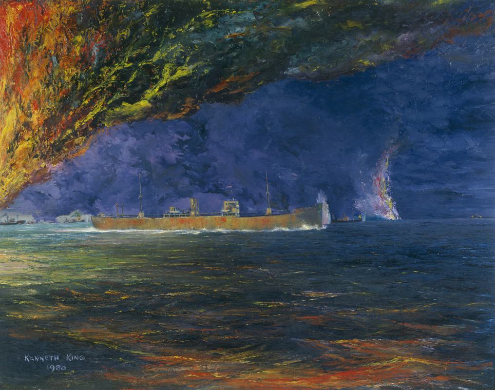 Port side view of the R.M.S. ORMUZ (passenger boat) in calm seas. Unsigned and undated.
