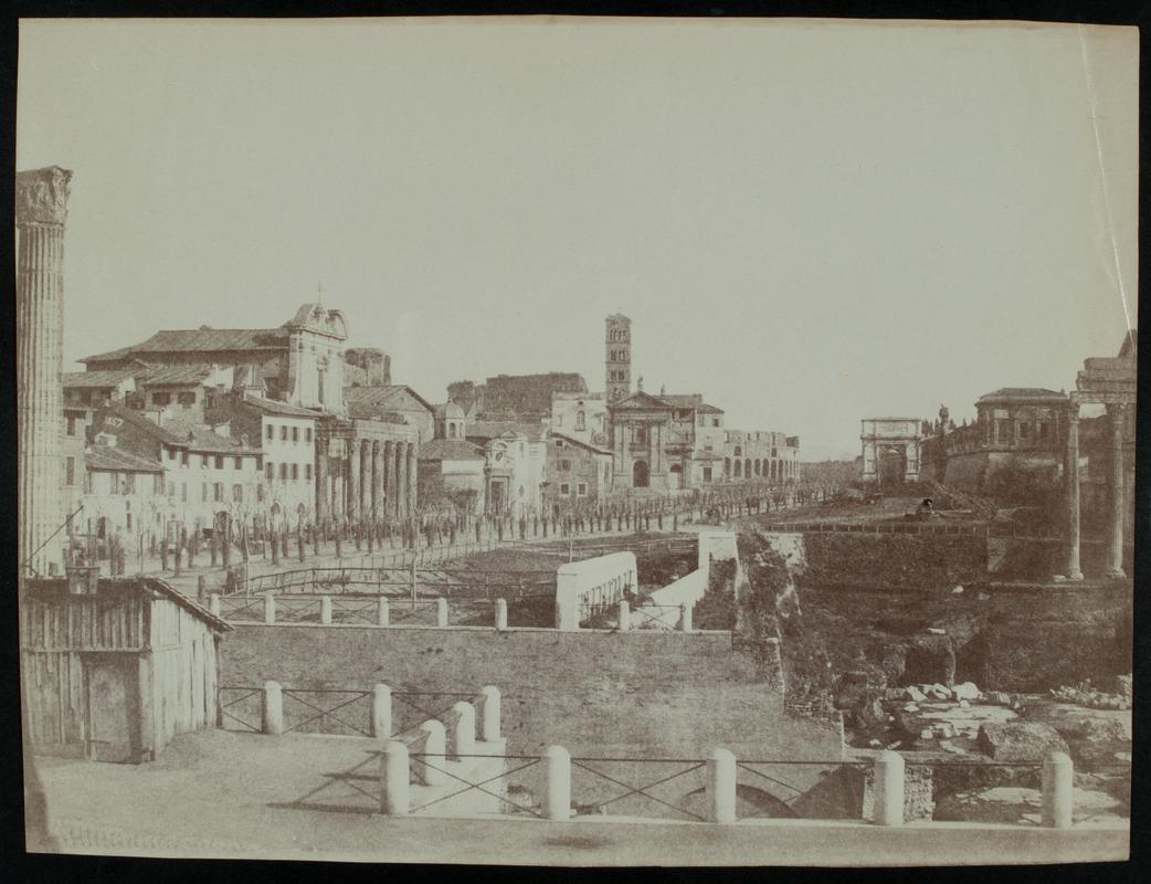 Salted paper print. View of gardens at Villa d'Este in Tivoli, near Rome.
