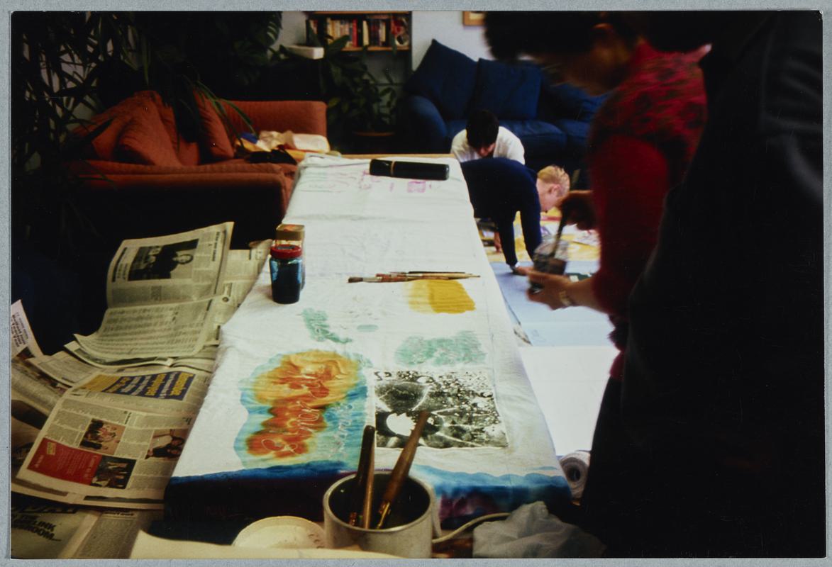Digital photograph of the memorial tree planted on World AIDS Day, 1 December 1994 in the Gorsedd Gardens, Cardiff. The tree was planted by Mike Phillips and Martin Nowaczek (co-founders of Cardiff Body Positive), along with the Lord Mayor and Lady Mayoress of Cardiff, to commemorate all those who have died of AIDS in Wales. It has become the focus for World AIDS Day commemorations, with people attaching red ribbons to the tree.