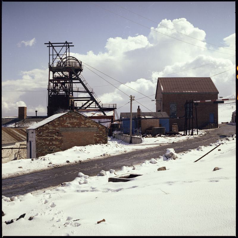 Roadway in the Graigola seam with sandstone roof and steel pipes, Clydach Merthyr Colliery. Photographer's label on reverse.