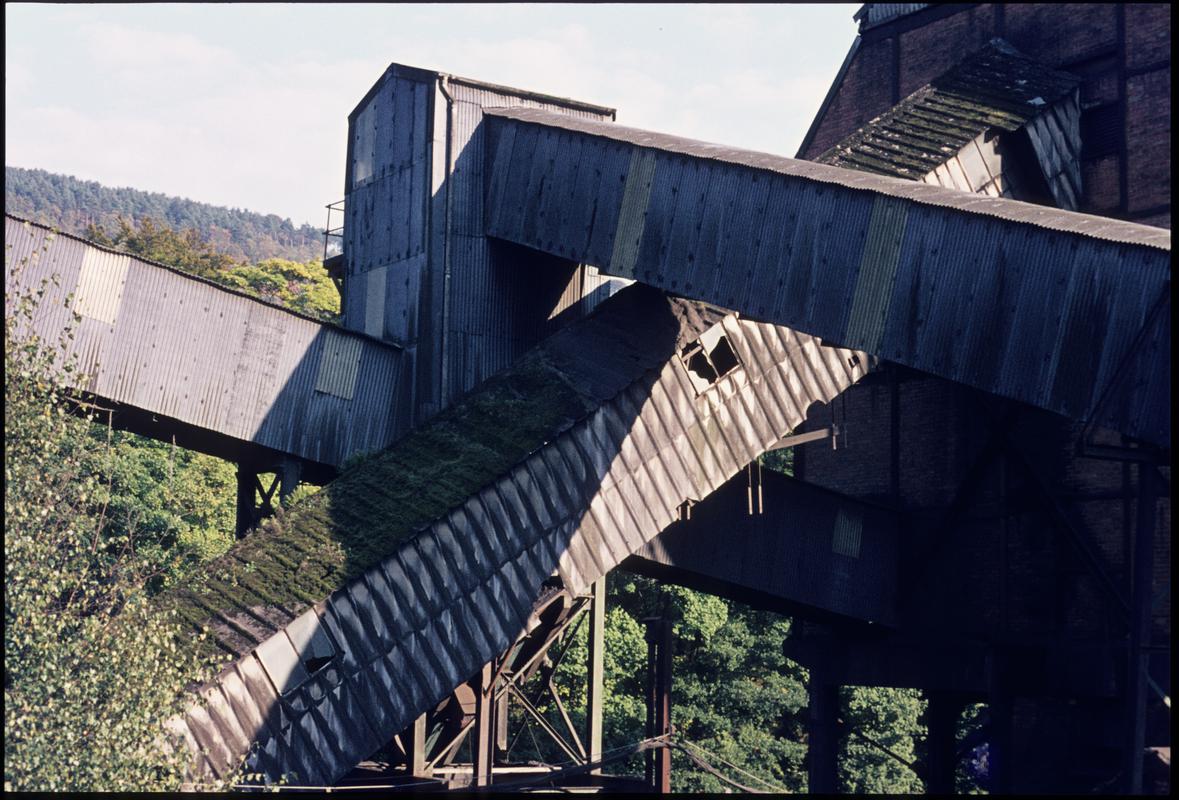 Colour film slide showing the downcast shaft, Celynen North Colliery.
