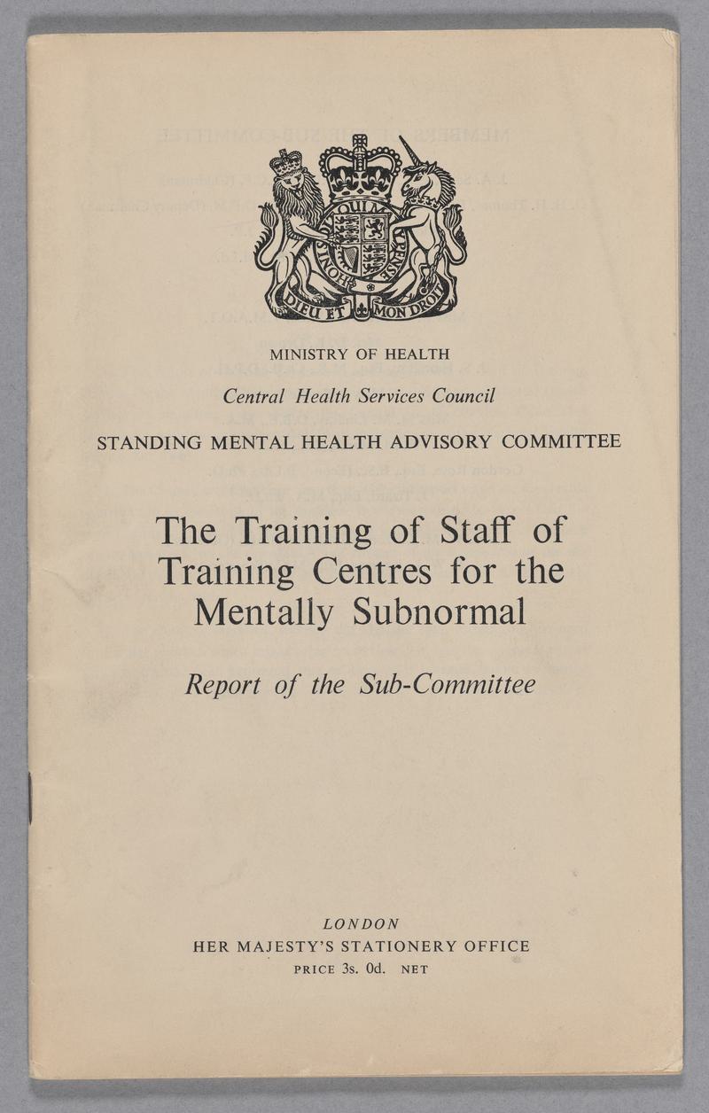 Ministry of Health booklet 'The Training of Staff of Training Centres for the Mentally Subnormal', 1962.