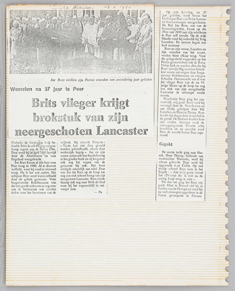 Newspaper cutting from the Western Mail regarding the posthumous investiture of the Distinguished Flying Cross to the family of Flight Lieutenant Ithel David Jeremy (service number 77965).
