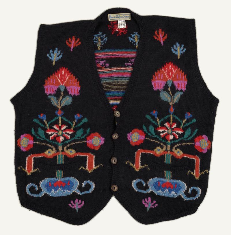 dark blue serge waistcoat with 3 pockets & 6 cloth covered buttons.