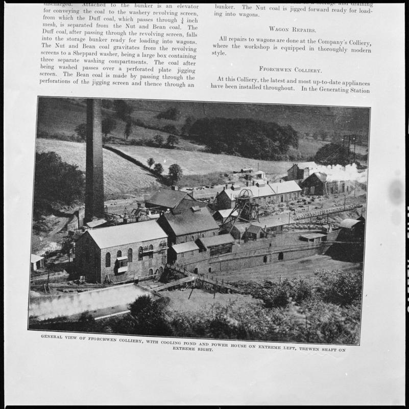 Black and white film negative showing a general view of Penallta Colliery from the baths.