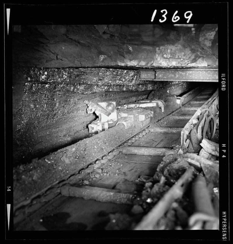 Black and white 35mm film negative showing Bargoed Colliery, May 1977. 'Bargoed May 1977' is transcribed from original negative bag.
