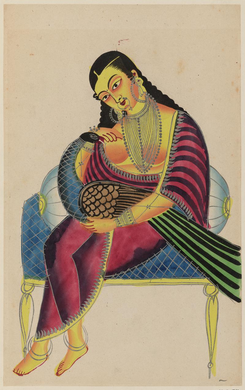 The name "Kalighat '' is derived from the Kalighat market situated near the Kalighat Temple along the BuriGanga River, historically a significant trade centre in East India for centuries. Initially, this art style depicted 'History Painting,' later evolving into 'Genre Painting,' capturing the Babu Culture during the early colonial period in Bengal. Here, intriguing parallels emerge between Western art and Kalighat art.
