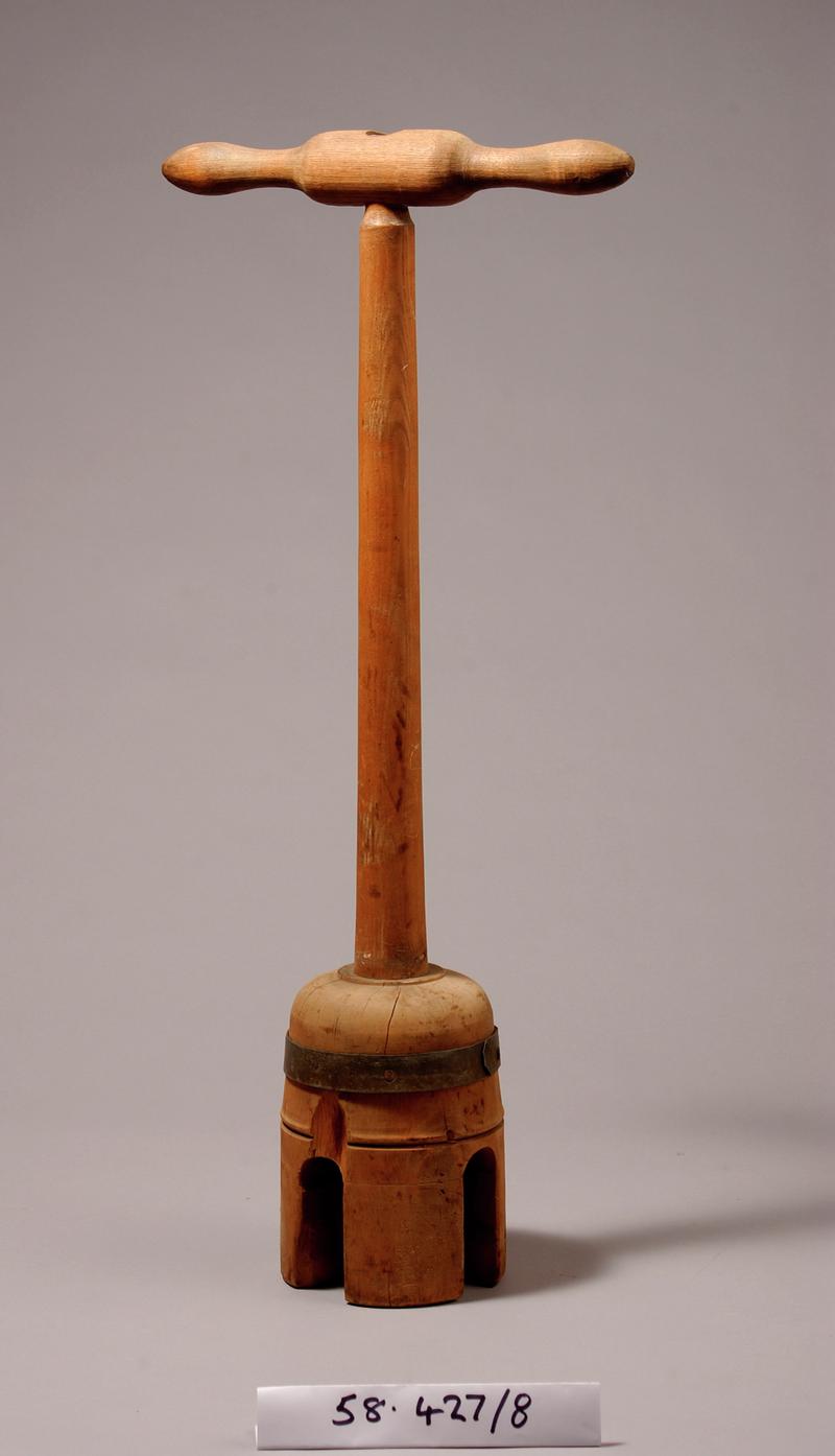 The iron would have been heated in the fire and inserted into a goffering iron stand, also known as an Italian (or tally iron) to create frills and ruffles.