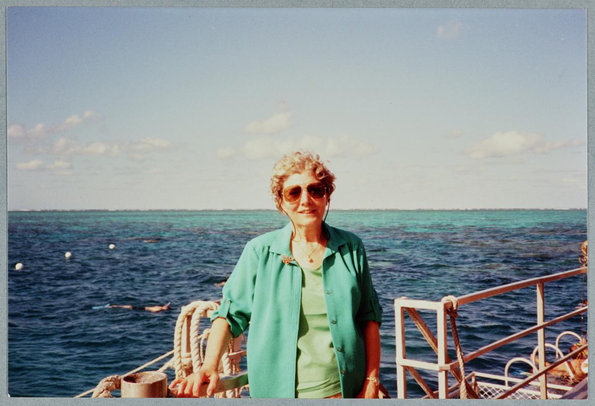 Photograph of Doris James sitting at a table, probably early 2000s.