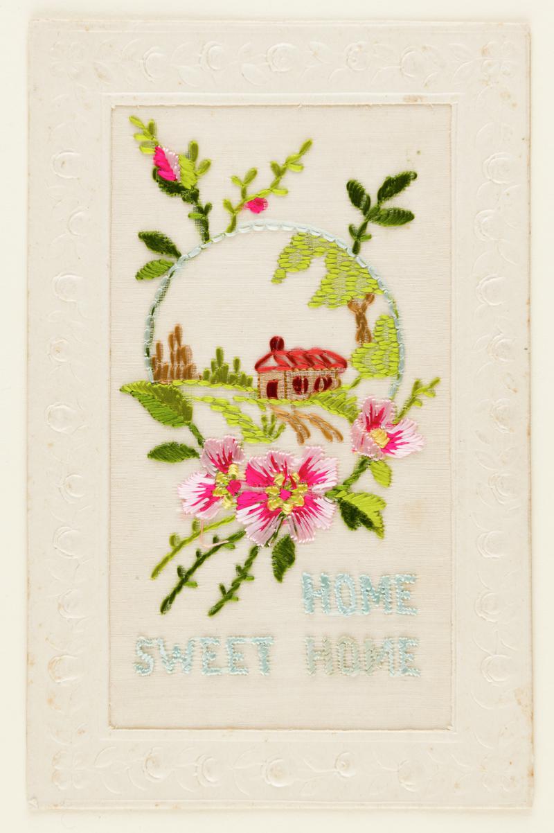 Embroidered birthday postcard sent by W. Clifford Morgan of Cardiff to his sister Irene during the First World War. Handwritten message on back: 'Irene / Wishing you many happy returns of the day / From Your Loving Brother Cliff'. In November 1914 he was serving in the 4th Public Schools Battalion Royal Fusiliers.