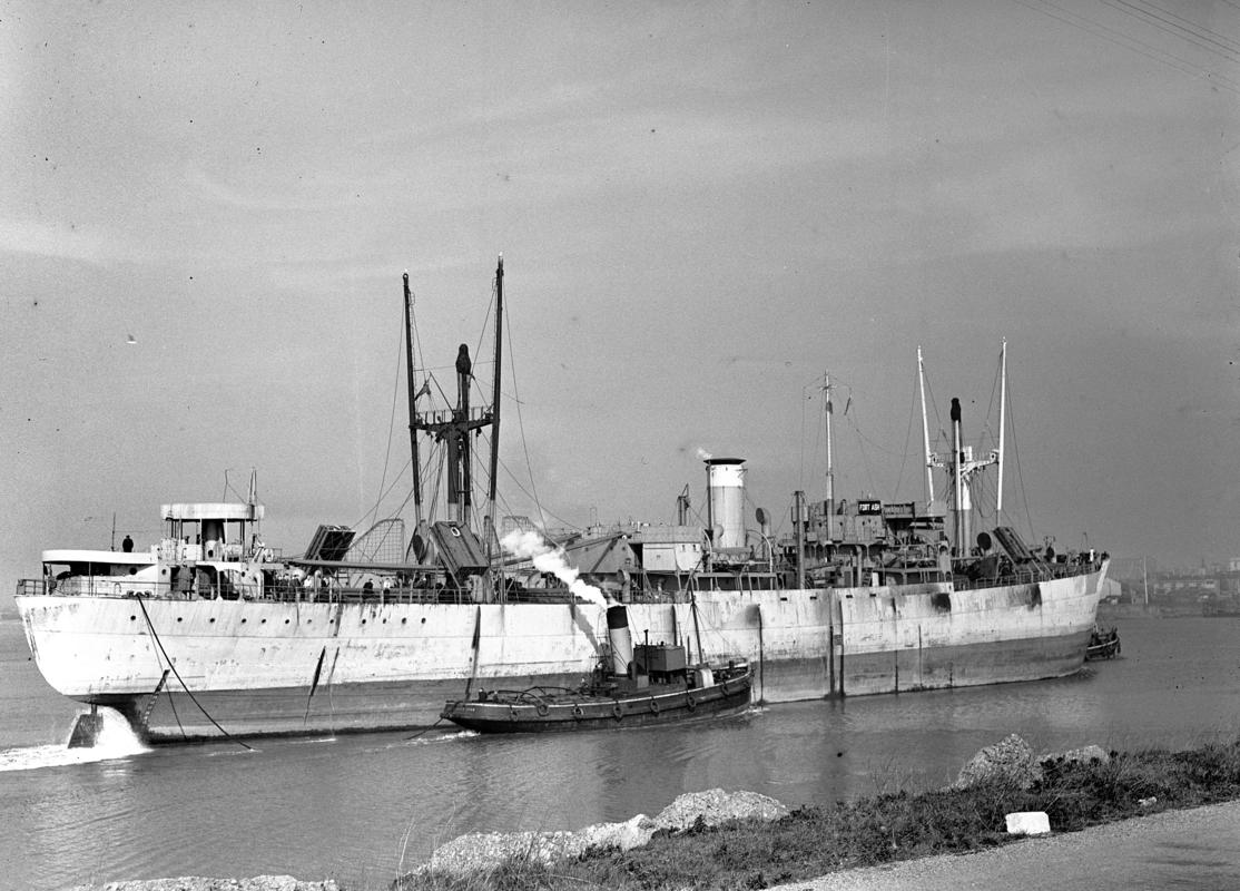 Port broadside view of S.S. ROMNEY at Cardiff docks, c.1936.