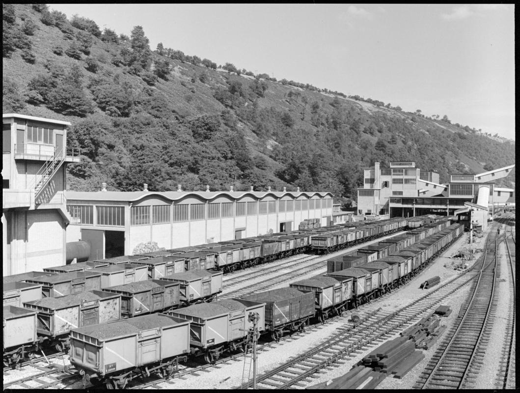 Black and white film negative showing a surface view of Hafodyrynys Colliery.