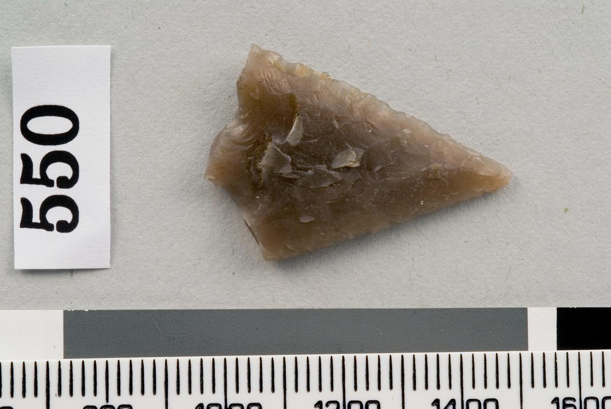 Broken about the middle into two pieces. The butt is broad, thick and squared, and there is no thickening towards the middle of the implement ; the surface is roughly tooled and pitted.
