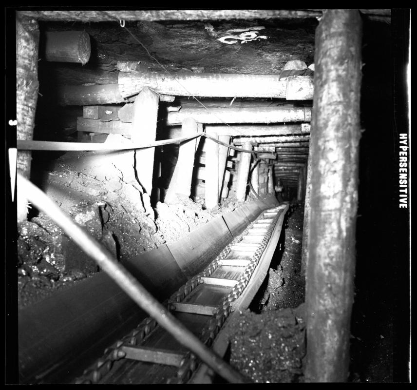 Colour film slide showing a man operating the Andrew Barclay winding engine, Morlais Colliery, c.1975.