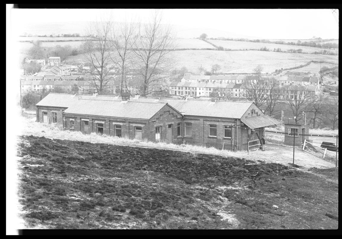 Colour film negative showing a view of the upcast and downcast shafts, Nantgarw Colliery. 'Nantgarw' is transcribed from original negative bag.