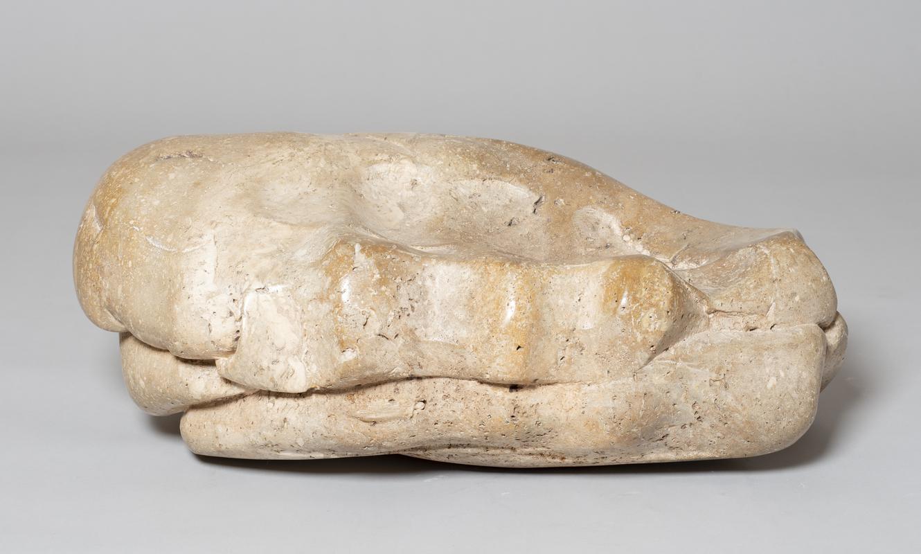'Parting' was Goscombe John's first major success, winning the Royal Academy Gold Medal in 1889, and enabling him to travel to Europe. The subject was set by the Royal Academy committee, and the sculptor interpreted it with the figure of a blind old man holding his dead son across his knees. The interest in surface effects, with contrasting textures of hair and skin, was typical of the New Sculpture style. The figure group reveals the influence of the celebrated sculpture of 'Ugolino and his sons' by Jean-Baptiste Carpeaux, first exhibited at the Paris Salon of 1863.