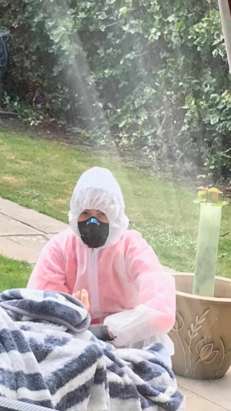 Textile artist and teacher, Haf Weighton, standing in front of an embroidered tablecloth she made with refugees and asylum seekers at Oasis Cardiff – a charity founded in 2008 that aims to help refugees and asylum seekers. The photograph was taken at St Fagans National Museum of History, 9 September 2022.