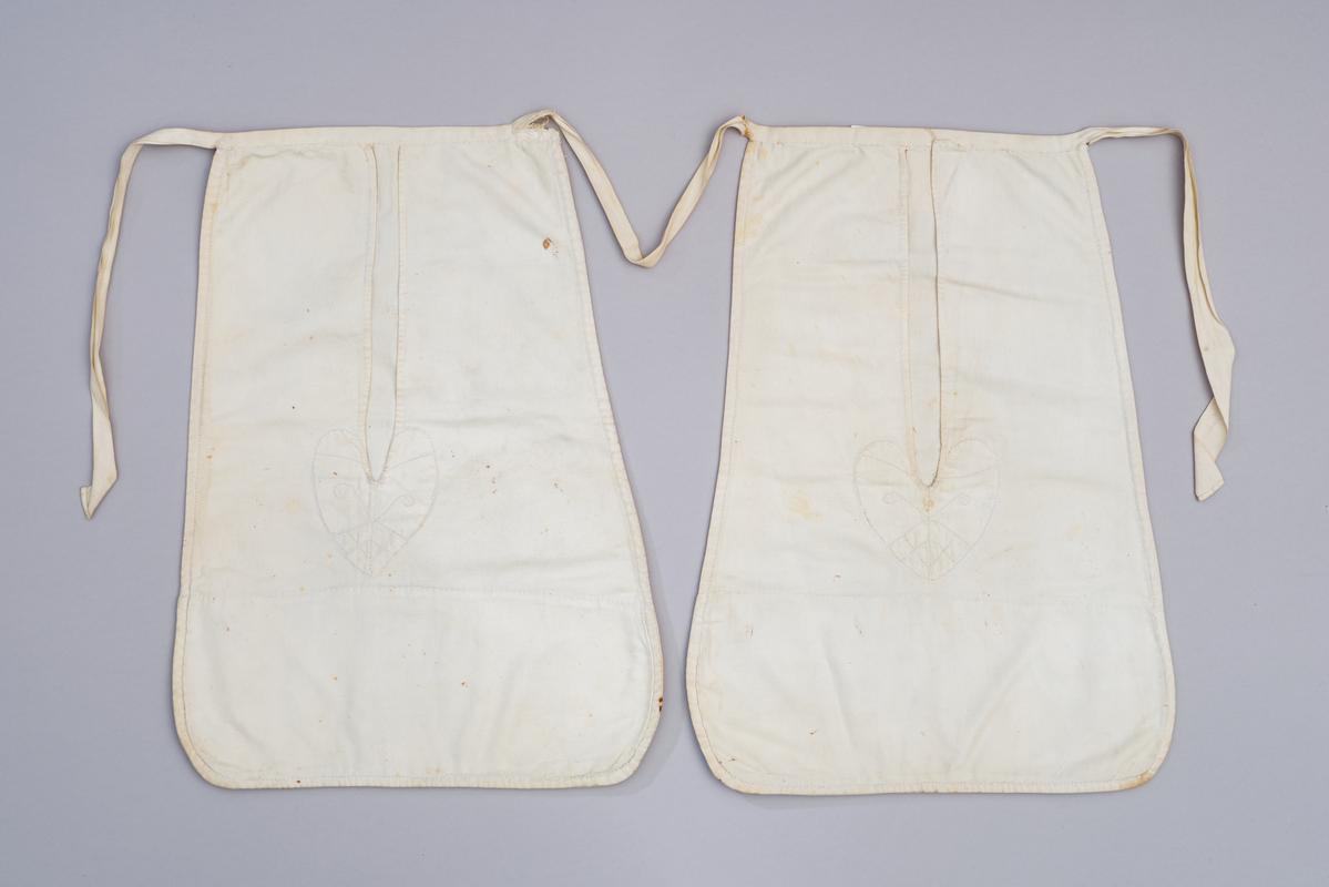 white cotton; triangular in shape; reinforced at base; tapes to tie around waist.