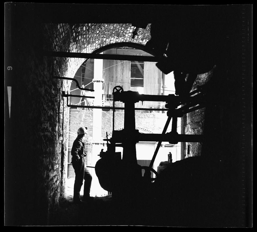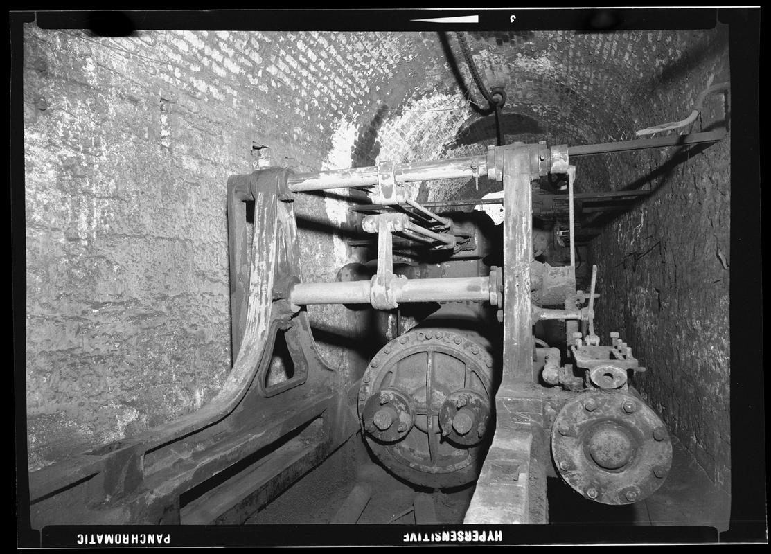 A view over Marine colliery, Ebbw Vale showing close-up of stack dated 1889.