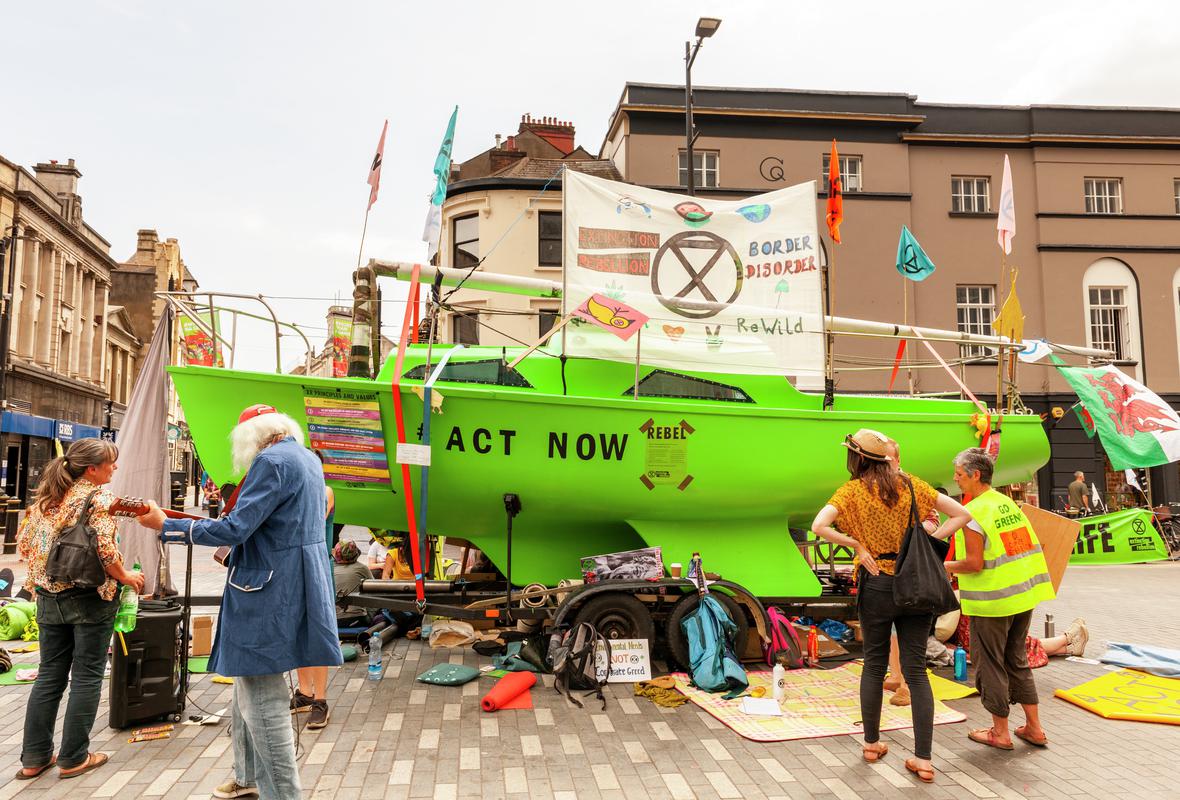 Protester with placards at the 'cost of living' demonstration held in Cardiff city centre on 1 October 2022. The demonstration was organised by the Cardiff Trades Council, supported by the Enough is Enough campaign.